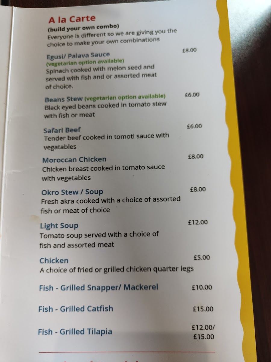 Step inside and feel immediately embraced by the welcoming vibe that fills the air. The gentle strains of traditional music create an inviting backdrop as you peruse the menu, which is bursting with mouthwatering options. Standout dishes include the iconic Jollof Rice with Chicken, a generous portion of fragrant rice paired with succulent pieces of chicken, all for just £14.00. Each bite is a melody of spices, transporting you to the heart of West Africa.